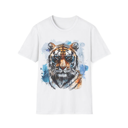 Intellectual Tiger Graphic Tee - Watercolor Feline Elegance T-Shirt - Unisex Softstyle T-Shirt