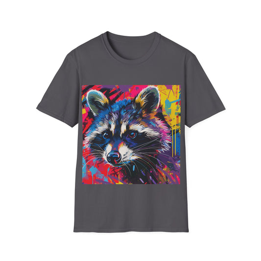 Electric Raccoon Groove Tee - Urban Art Raccoon T-Shirt with Neon Splash - Unisex Softstyle T-Shirt
