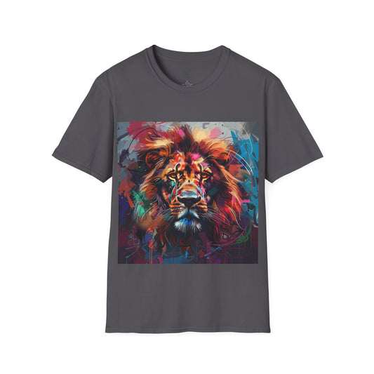 King's Aura Abstract Lion Tee - Vibrant Graffiti Lion Portrait T-Shirt - Unisex Softstyle T-Shirt