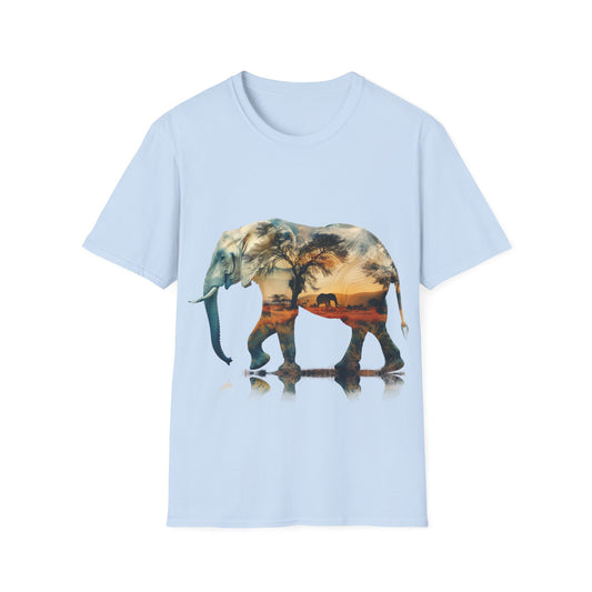African Sunset Elephant Double Exposure Graphic T-Shirt - Unisex Softstyle T-Shirt